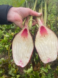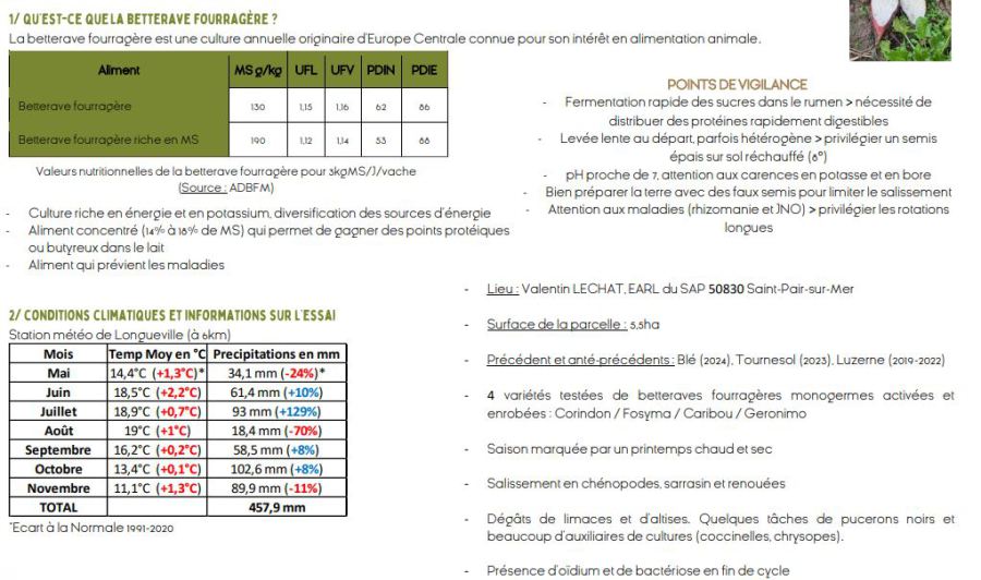 A noter que + une betterave est riche en MS +elle est productive (T de MS/ha) et + elle se conserve. Mais il est conseillè de ne pas la donner entière aux animaux.