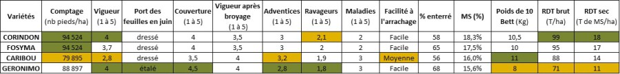 La variéèè CORINDON semble être la plus adaptée à une conduite bio avec un nombre de pieds élevé et une bonne vigueur au démarrage, facile à arracher avec un excellent rendement.
