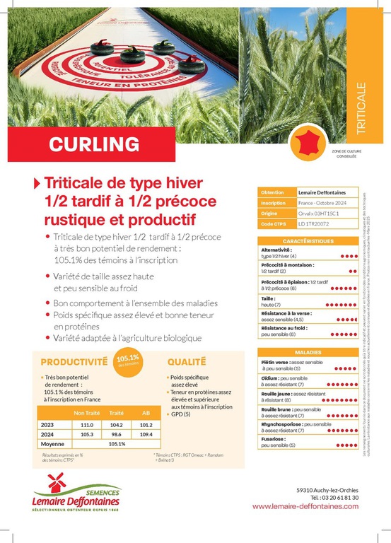 Tèlècharger la fiche technique du Triticale CURLING Bio