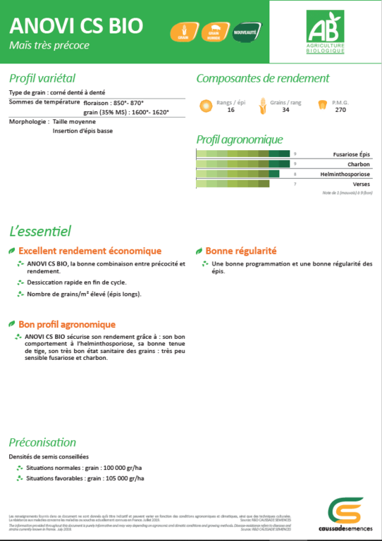 Tèlècharger la fiche technique du maïs Anovi CS Biologique