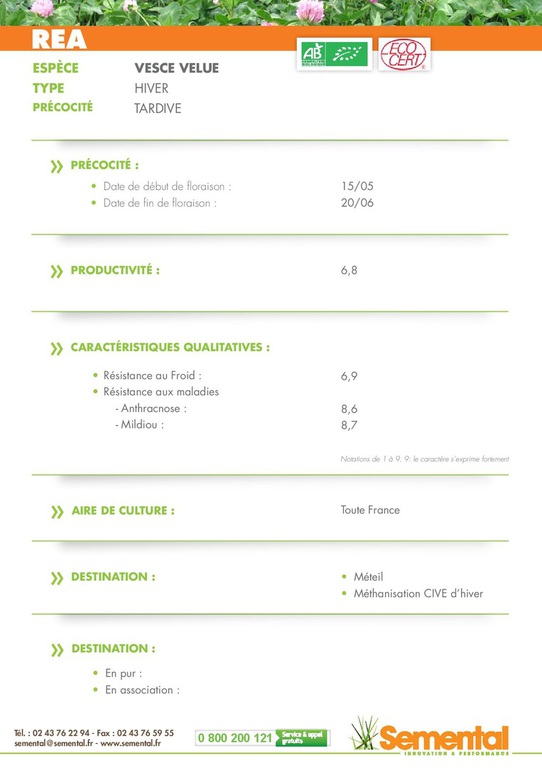 Tèlècharger la fiche technique de la vesce velue Rea Bio